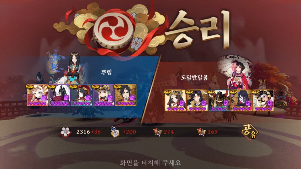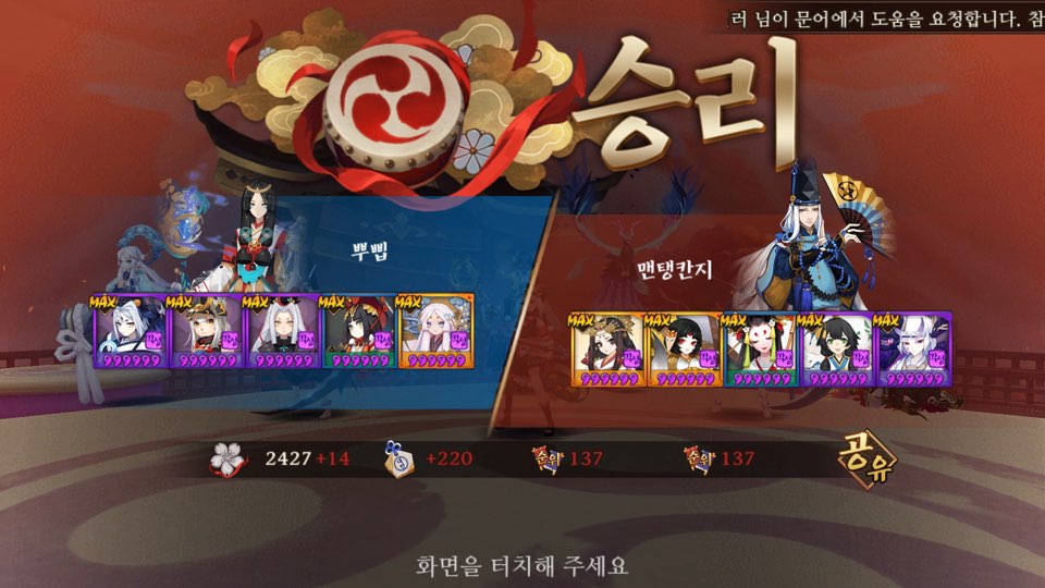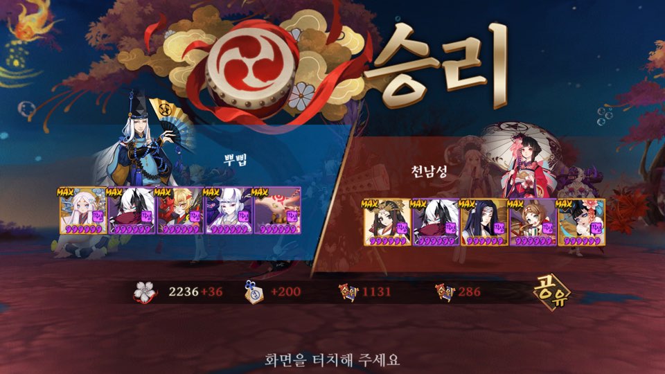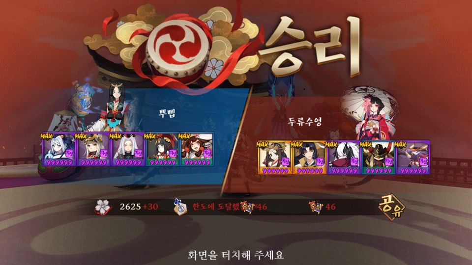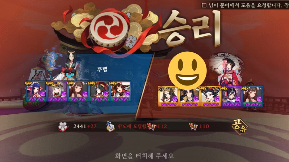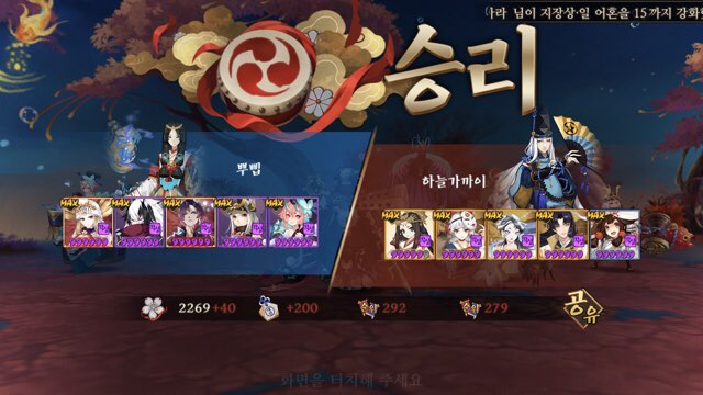운좋으면 먹긴 먹었던걸로 기억 ㅋㅋㅋ 침녀 다터지고 세이메이 반격 안해서 귀왕 분열되기전에 우리턴 빨리오고 뭐 기타등등 뭐 그런 운 ㅋㅋ