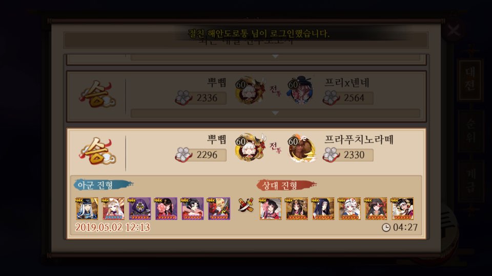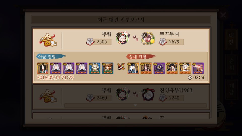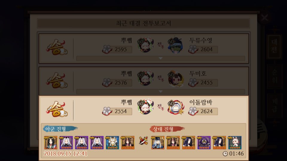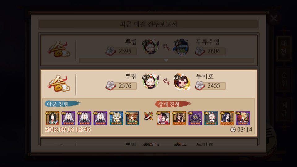 막 엄청난건 아니고 상대 조합 생각 안하고 무조건 내가 정한 컨셉의 캐릭터만 내서 대전하는고임..ㅋㅋ
