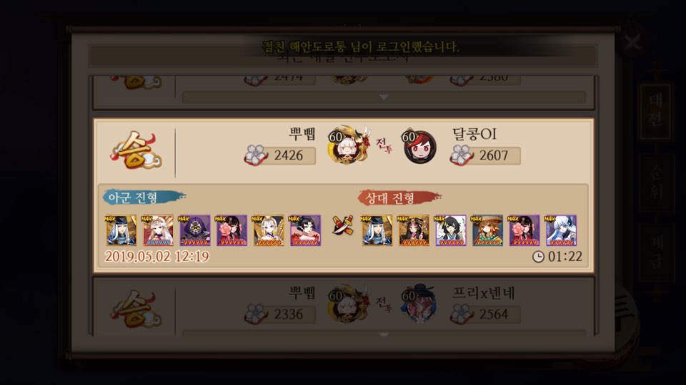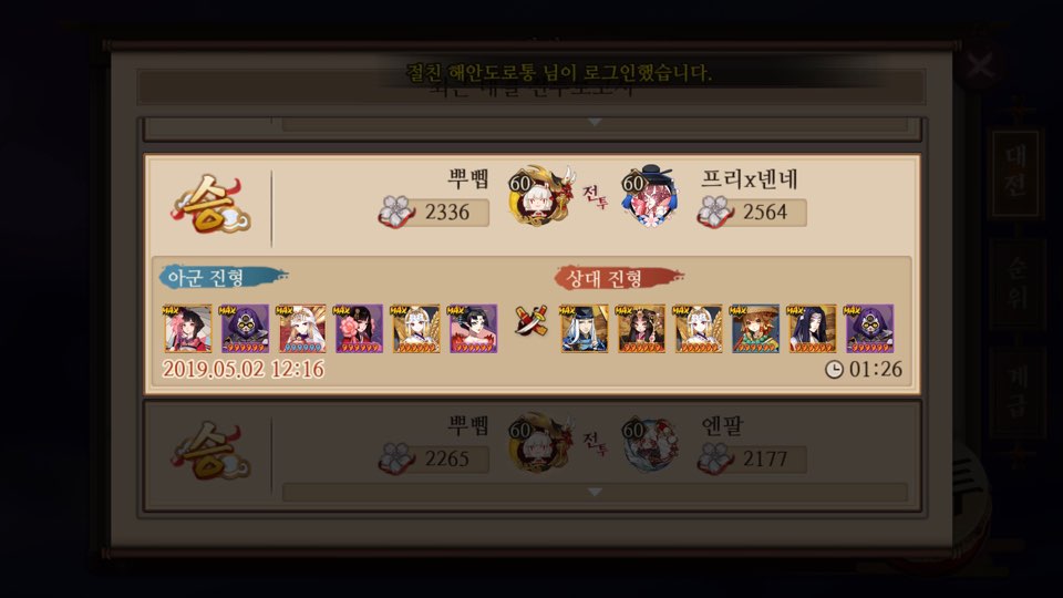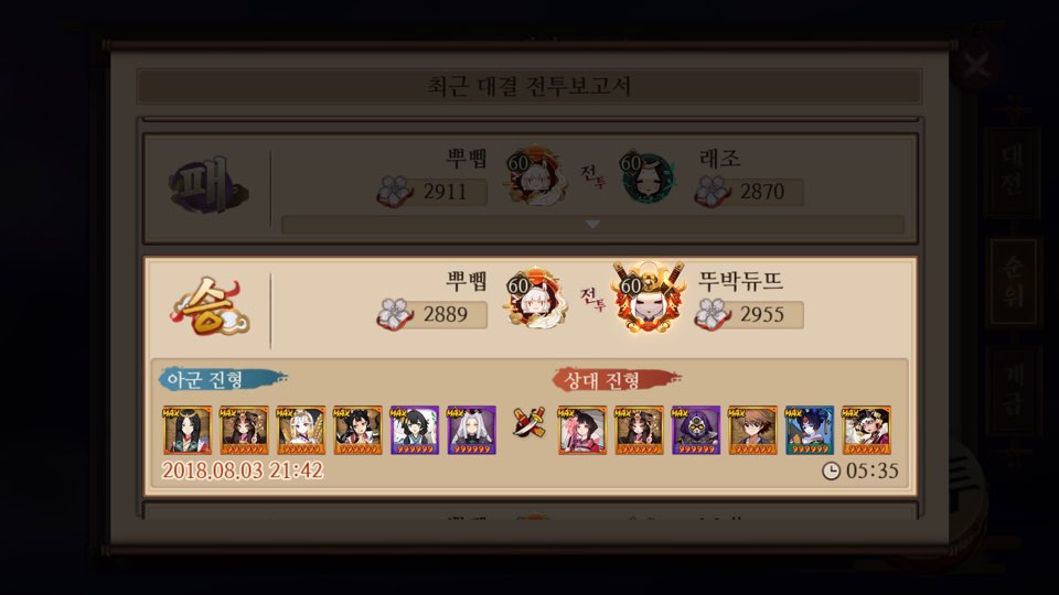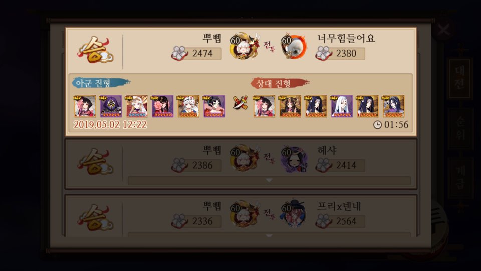 이때는 나도 그렇게 음양사 게임에 대해 이해도가 막 높을땐 아니어서 실수도 많이 하고 잘 못하고 그랬음..