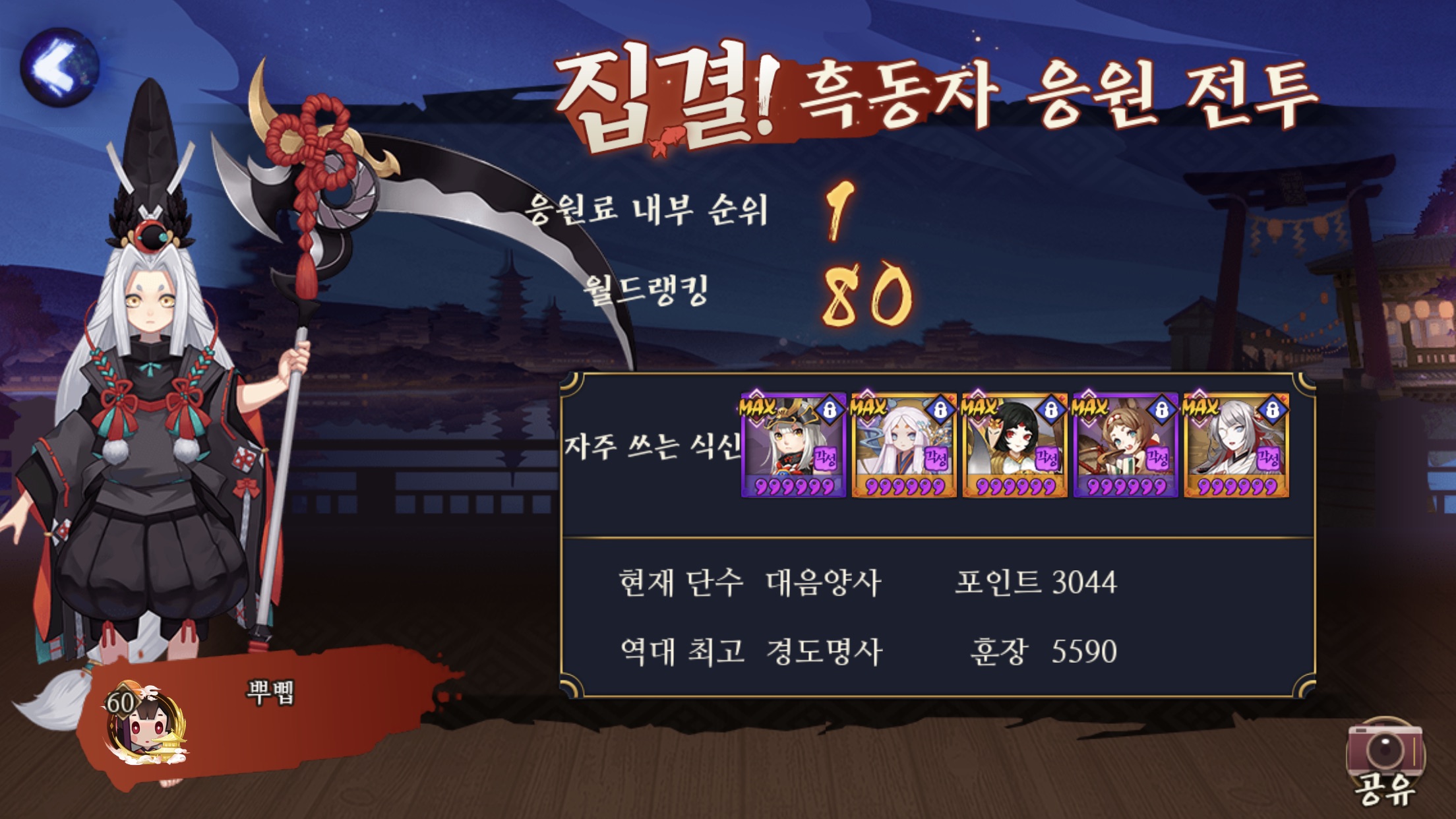 ㅋㅋㅋㅋㅋㅋㅋㅋ이건 뭐냐면, 같은 료였던 친구랑 4성 귀왕 1위먹으려고 파티 짠거 ㅋㅋㅋㅋㅋㅋㅋㅋㅋㅋㅋ
