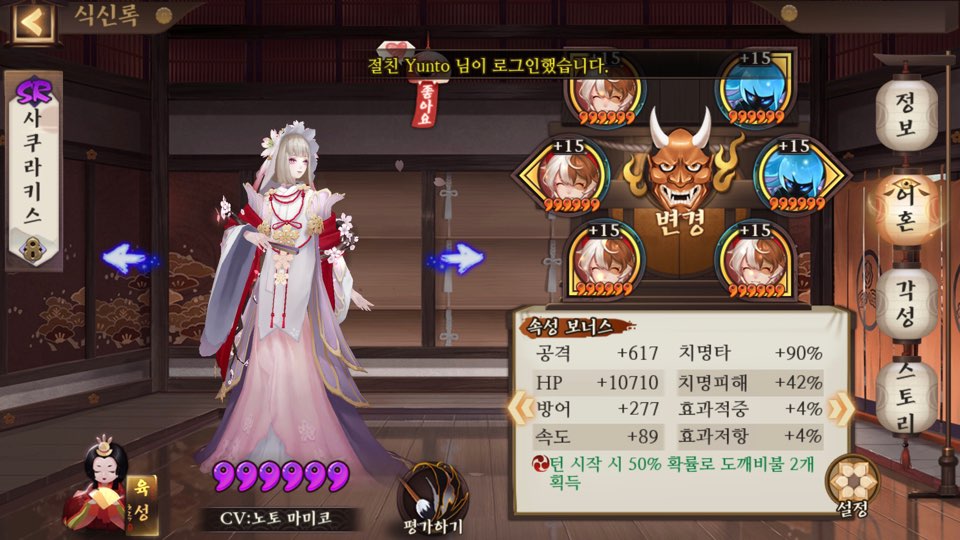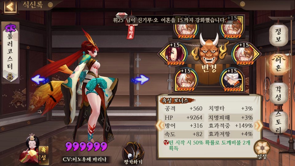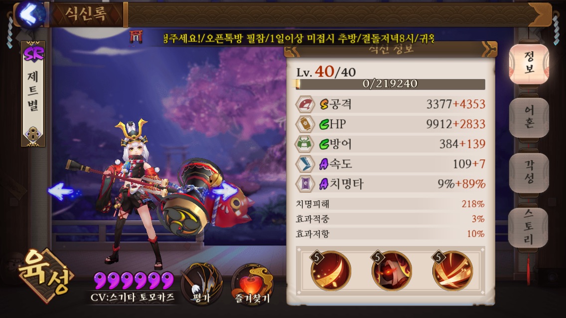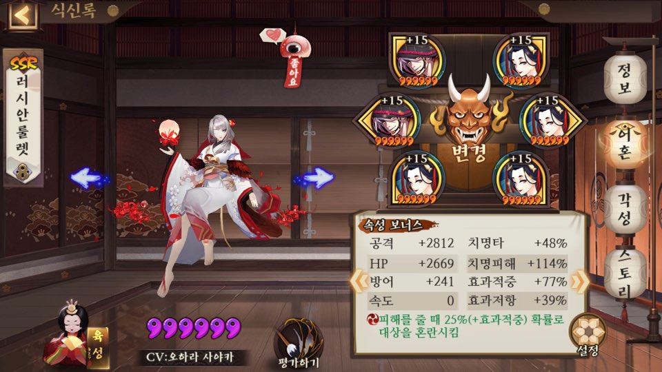그리고 저기 구석탱이에 6성 아라카와가 있죠? 저 아이는 6성인상태로 약 반년 넘게 어혼이 완성되지않아 그냥 계속 구석탱이에 박혀있을 운명이다..𝙎𝙄𝘽𝘼𝙇
