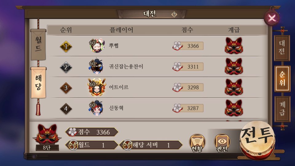 이지만 당시에는 진짜 열심히 한거에 비해 너무 못이겨서 허망해서 게임을 접었었음 ㅋ(?)